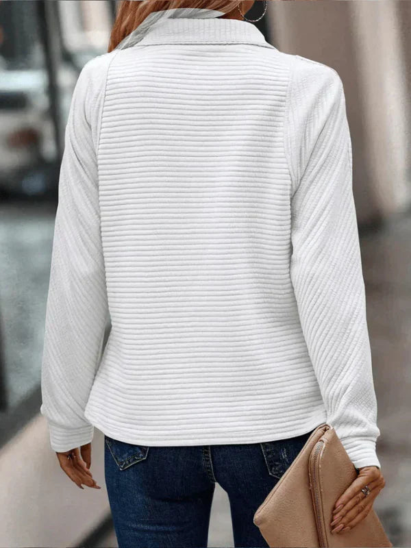 Elevate your casual wardrobe with the Janita Ribbed Half-Zip Sweater — the perfect blend of laid-back comfort and modern elegance. Crafted in a soft ribbed knit, Janita offers a flattering silhouette with just the right amount of stretch. The half-zip collar lets you adjust from cozy to chic, making it a versatile choice for coffee runs, weekend strolls, or casual dinners.